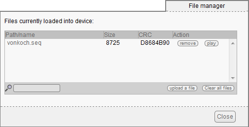 There is an important detail: while recording, graphical functions have no effect on the display. But with a VirtualHub , we can notice a new "vonkoch.seq" file in the device file-system.