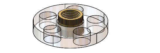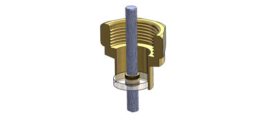 On a découpé un disque de plastique au diamètre interne du réducteur de diamètre, puis on a placé un insert fileté et un bout de tige filetée enduite de démoulant au milieu.