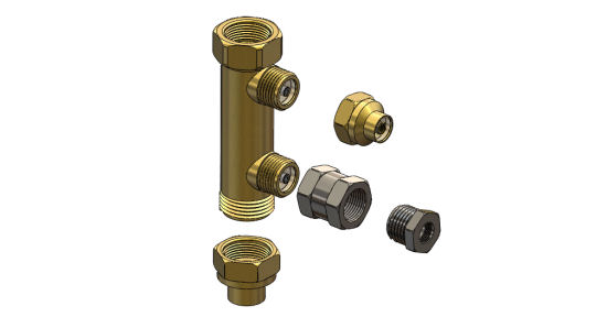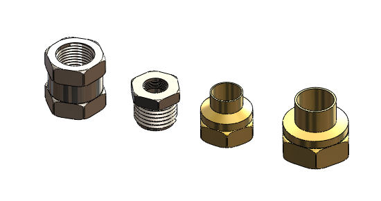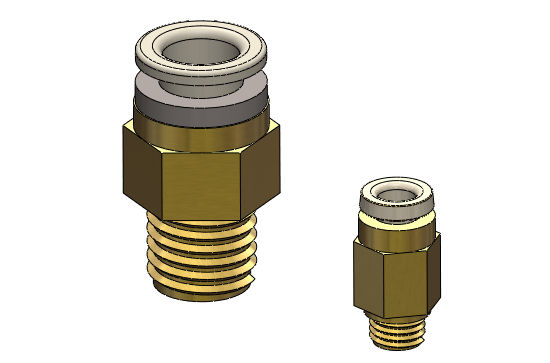 Les adaptateurs pour le filetage M5 des petits embout rapides ont été fabriqués en utilisant des réducteurs de diamètre. Ces réducteurs sont normalement destinés à être soudé à de la tuyauterie.