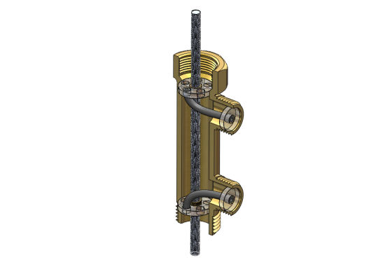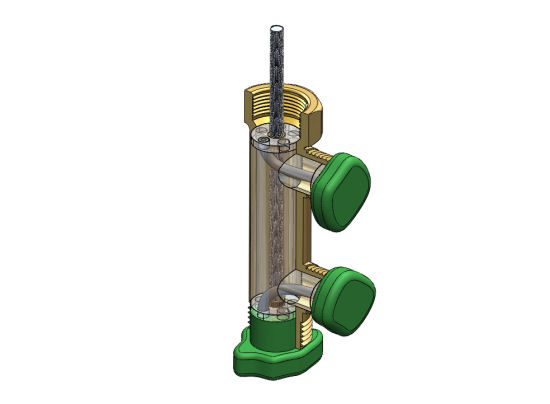Il ne reste plus qu'assembler le tout: on colle à la colle époxy en étalant soigneusement la colle sur les deux filetages. On n'a pas eu besoin de fabriquer d'adaptateur pour la prise d'air: on a trouvé des adaptateur filetés tout faits.