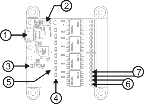 | 2: | Yocto-button | 5: | State led for relay 2 |