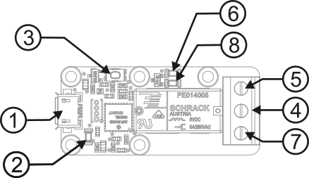 | 4: | Relay input | 8: | Led of output B |