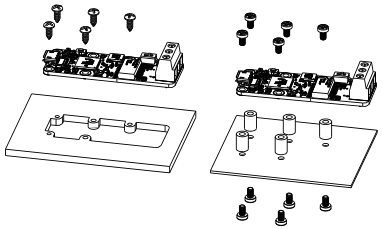 In order to mount the Yocto-RS485 module, you can put small screws in the 2.5mm assembly holes, with a screw head no larger than 4.5mm. The best way is to use threaded spacers, which you can then mount wherever you want. You can find more details on this topic in the chapter about assembly and connections.