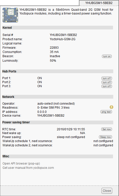 Click on the serial number corresponding to your YoctoHub-GSM-2G. This opens your module property window: