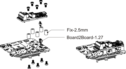 All the accessories necessary to fix a module on your YoctoHub-GSM-2G are relatively usual. You can find them on the Yoctopuce web site, as on most web sites selling electronic equipment. However, beware: the head of the screws used to assemble the sub-module must have a maximum head diameter of 4.5mm, otherwise they could damage the electronic components.