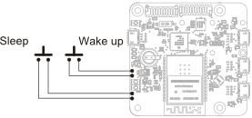 Switching to sleep and waking up can be programmed based on a schedule, controlled by software, or controlled manually with two push buttons located on the YoctoHub-Wireless-SR circuit. You can find there two pairs of contacts which enable you to shunt these two buttons.