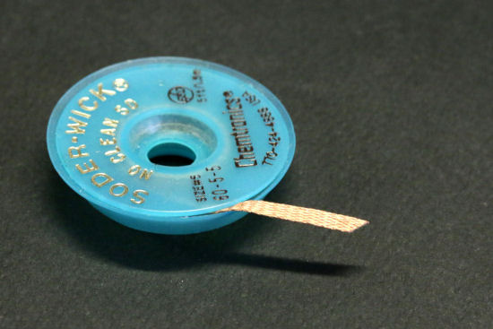 La tresse à dessouder se présente sous la forme de fils de cuivre très fins tressés ensemble. Il suffit d'enduire la soudure de flux, et de placer l'extrémité de la tresse sur le tout et et presser délicatement avec la panne d'un fer à souder chaud. L'étain va fondre et être absorbé dans la tresse par capillarité. C'est une méthode assez pratique pour les composants traversants, en revanche ça ne marche pas très bien avec les composants de surface parce qu'il y a toujours un peu d'étain qui préfère rester entre le composant et le PCB.