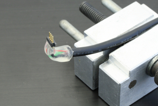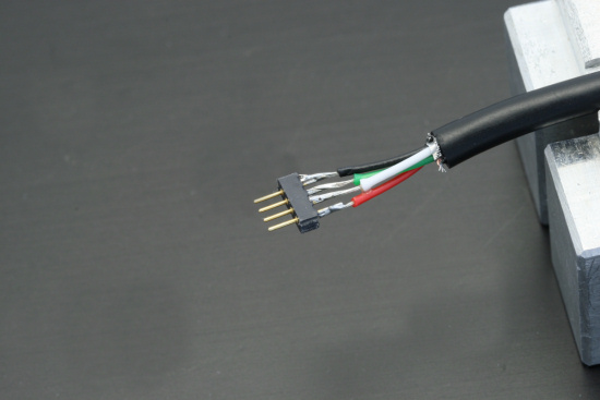 L'idée est de souder un des connecteurs sur le board, ce qui est nettement plus facile que d'y souder 4 fils, et de souder l'autre au bout d'un câble USB.