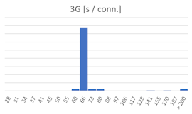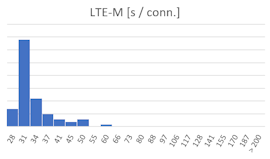 On constate donc que le YoctoHub-GSM-4G (en mode LTE-M) est en général deux fois plus rapide que le YoctoHub-GSM-3G-EU pour l'envoi des mesures. En consultant les logs du module, on observe que cela n'est pas dû à la transmission des données elle-même mais bien à l'établissement du lien avec la station cellulaire.