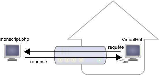 La seule différence consiste à indiquer au tout début de notre script PHP comment trouver le VirtualHub, et à configurer le VirtualHub pour trouver notre script PHP. Rien de plus simple:
