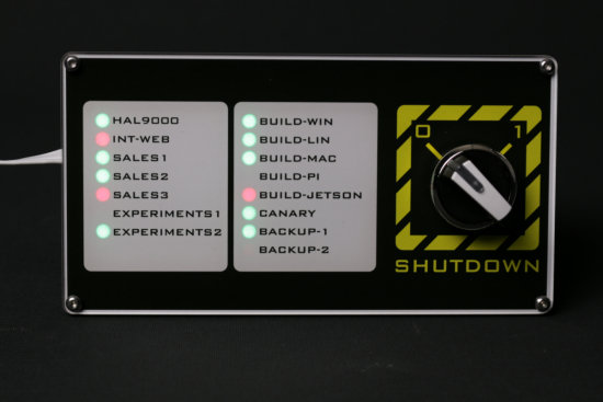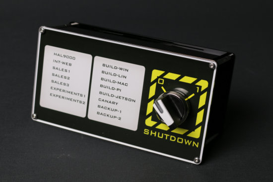 Chez Yoctopuce, beaucoup de tâches sont automatisées à l'aide d'ordinateurs éparpillés un peu partout, et après une panne de courant il faut les rallumer un par un sans en oublier. Le projet de cette semaine est donc de construire un petit boîtier qui indiquera l'état de chaque machine, et si en plus le boîtier permettait de lancer un shutdown propre sur toutes des machines, cela permettrait d'éteindre facilement nos machines avant les coupures de courant annoncées.