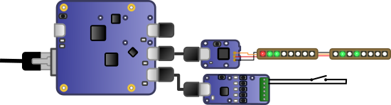 - Un Yocto-Color-V2 et des barrettes de LED RGB, chaque LED correspondant l'état d'une machine