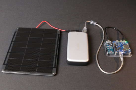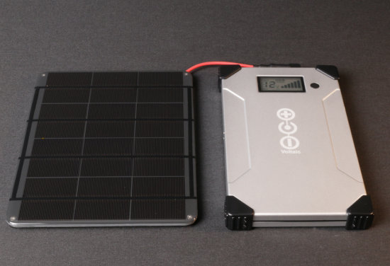 Les produits Voltaic Systems sont une bonne trouvaille, ils ont visiblement été pensés pour des applications très semblables aux nôtres : faire marcher indéfiniment un petit système au beau milieu de nulle part en l’alimentant avec une batterie rechargée grâce à un panneau solaire. Voltaic Systems vend d'ailleurs des panneaux solaires de diverses puissances et tous les accessoires nécessaires pour les connecter à leurs batteries.