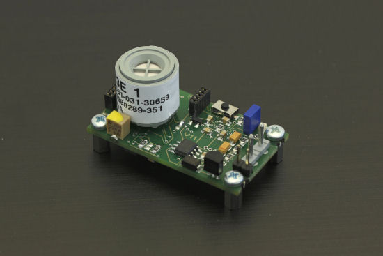 - Capteur d'ozone (O3), gaz toxique produit en intérieur par les arcs électriques dans les photocopieurs et imprimantes lasers, susceptible de se trouver un concentration significative dans les locaux mal ventilés, et en extérieur par l'action des rayons UV sur le dioxyde d'azote; Modèle O3 3E1 MINI, 0-1ppm.