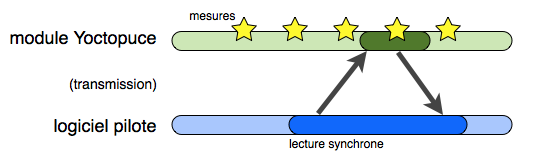 Pour réduire le temps perdu par le transport, la librairie Yoctopuce maximise la rentabilité des échanges en transportant par avance toutes les données d'un capteur à la fois. Ainsi, si l'on commence par demander la température courante au Yocto-Meteo, il transmet en même temps la valeur min et max, ainsi que la pression et l'humidité. Cela représente un petit surcoût à la première requête, mais représente une grosse économie pour les requêtes suivantes.