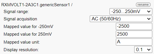 Notez que l'échantillonnage AC est basé sur un suréchantillonnage à 600Hz, et est conçu pour donner des bons résultats avec les fréquences de 50Hz ou 60Hz que l'on trouve sur le secteur. Il ne fonctionnera pas bien pour les fréquences supérieures, ni pour les fréquences qui ne sont pas des multiples de 10Hz. Néanmoins, pour les fréquences du secteur, vous obtiendrez une mesure très correcte. En configurant la correspondance tension/primaire de votre transformateur ampèremétrique, le Yocto-milliVolt-Rx vous donnera une lecture directe du courant circulant dans le fil.