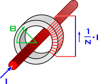 En effet, pour la mesure de courants forts, l'utilisation d'un shunt est vite limitée en raison de l'échauffement produit par le passage du courant. Par contre, pour le courant alternatif, on peut très facilement faire une mesure par induction à l'aide du principe d'un transformateur: