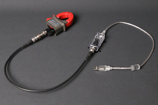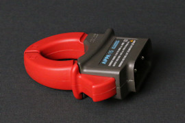 On trouve facilement ce genre de transformateurs dans le commerce, même sous forme de pince ampèremétrique qui peut s'ouvrir et se refermer autour d'un fil. Il existe des pinces avec une sortie spécifiée en tension - comme celle de gauche ci-dessous, spécifiée pour fournir en sortie 0.1mV par ampère, jusqu'à 30mV/300A - et d'autres avec une sortie spécifiée en courant, comme celle de droite, spécifiée pour fournir 0.5mA par ampère, jusqu'à 50mA/100A.