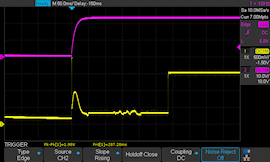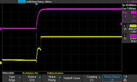 Dans le même registre, la nouvelle version améliore considérablement le délai entre la mise sous tension de la boucle et le début de la transmission du signal. Il y a quelques temps, à la demande d'un client, nous avons publié une mise à jour de firmware pour le Yocto-4-20mA-Tx qui réduisait à moins de 300ms la latence entre la mise sous tension et la transmission du signal. Le nouveau Yocto-4-20mA-Tx-V2-C peut faire bien mieux: