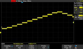 La deuxième amélioration concerne la fréquence de rafraîchissement. Alors que le Yocto-4-20mA-Tx ne peut mettre à jour la valeur transmise sur la boucle de courant qu'à 10Hz environ, le nouveau Yocto-4-20mA-Tx-V2-C est capable de se mettre à jour près de dix fois plus vite. Voici par exemple ce qu'on obtient avec les deux modules si l'on essaie de générer une rampe progressive sur une seconde à l'aide de la méthode CurrentLoopOutput.currentMove():