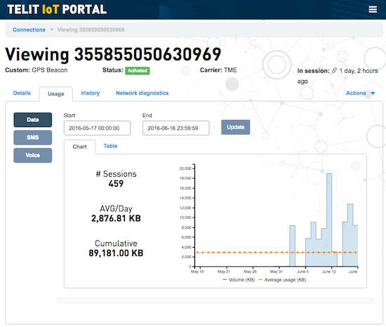 Toutes les véritables offres de type M2M que nous avons essayées proposent une console web permettant de gérer les SIMs à distance: contrôle de la quantité de données transférées, en général avec un jour de retard, et possibilité de désactiver une carte. Il est parfois possible de définir un seuil d'alerte lorsqu'une certaine quantité est dépassée, mais étrangement nous n'avons jamais trouvé d'option permettant d'effectuer un blocage automatique en cas de dépassement. Par contre, la plateforme proposée par Telit propose une API permettant de programmer son propre système automatique de gestion des SIM. Pour les projets de taille moyenne, c'est probablement une option beaucoup plus rentable que de faire développer à prix d'or un système de gestion personnalisé, comme le proposent les autres opérateurs.