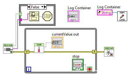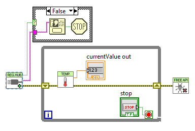 Si vous n'avez pas envie de vous farcir la théorie pour comprendre comment ça marche, voici un fichier ZIP qui contient deux VIs. Dézippez-le où bon vous semble, et ouvrez le Block Diagram de votre application LabVIEW. Supposons qu'il s'agisse d'une application toute bête qui lit un capteur de température comme celle ci-dessous