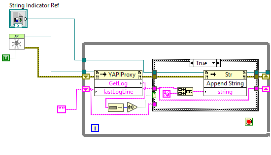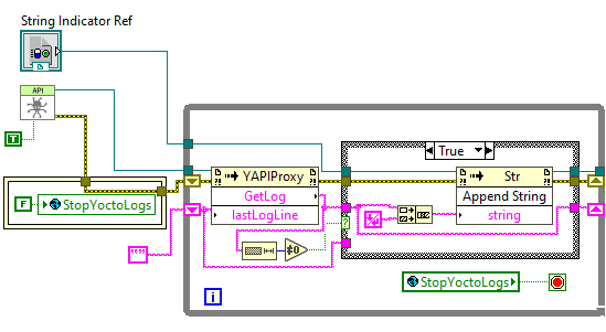 Ajoutez le VI GetYoctoAPILogs et donnez-lui une référence sur un String indicator
