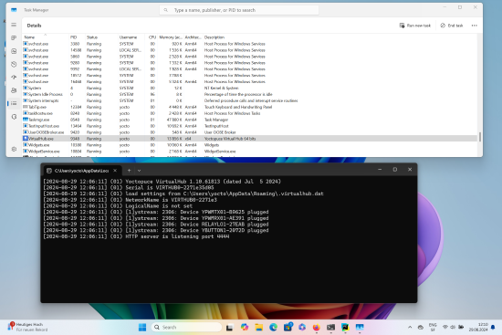 La bonne nouvelle, c'est que tout fonctionne sans problème. Tant la version 32 bits que la version 64 bits de VirtualHub fonctionnent parfaitement sur notre Surface Laptop équipé d'un processeur ARM (Snapdragon® X Plus). L'émulateur gère correctement les ports USB, sans latence perceptible. À moins d'aller regarder dans le Task Manager, il est impossible de deviner qu'il ne s’agit pas d'une application native.
