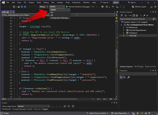 Les projets Visual Studio des exemples C++ permettent de compiler une version ARM