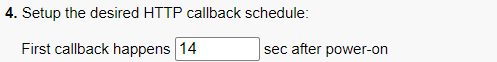 - Dans la fenêtre de configuration des callbacks HTTP, il est possible de configurer la fréquence à laquelle le hub doit se reconnecter au serveur Web pour poster des données. Pour les applications où l'on ne met pas le hub en sommeil profond entre les envois de mesure, c'est l'endroit où configurer la fréquence de connexion au serveur. Mais si le hub s'endort de toute manière entre les callbacks HTTP, ce paramètre n'est pas significatif car le hub fera toujours un premier callback à chaque réveil, dès l'établissement de la connectivité réseau.