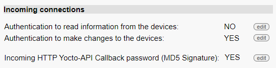 Pour éviter qu'un hub autre que le votre puisse se connecter à votre serveur, utilisez la fenêtre de configuration du VirtualHub-4web pour définir un Incoming HTTP Yocto-API Callback password (MD5 Signature).