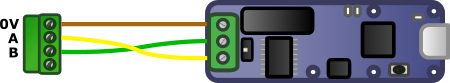 Pour interroger la ventilation, nous utiliserons donc un Yocto-RS485-V2, en connectant les fils comme suit: