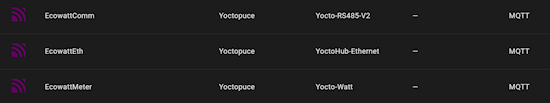 Dès le callback lancé, nos modules Yoctopuce apparaissent dans la liste des devices MQTT découverts par Home Assistant: