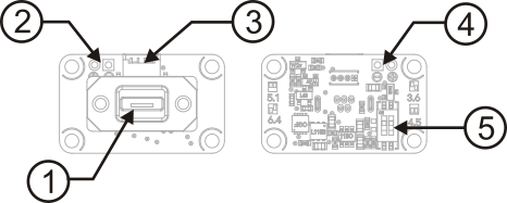 | 1: | Connecteur USB Micro-B 2.0 (port hôte) | 4: | Contacts pour la batterie |