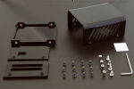 Ce boîtier vous permettra de protéger votre Yocto-MaxiRelay. Il est constitué d'une base munie d'inserts filetés en laiton, de deux façades et d'un couvercle en verre acrylique (PMMA). L'ensemble est tenu fermé par des vis métriques. Le module Yocto-MaxiRelay est maintenu dans le boîtier par quatre entretoises métalliques.