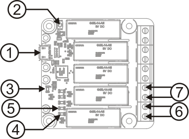| 1: | prise USB | 4: | Led d'etat du relais 1 |