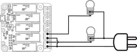Les cinq relais embarqués par le module Yocto-MaxiPowerRelay fonctionnent comme de simple interrupteurs normallement ouverts. Lorsque qu'ils sont au repos (état A) le circuit commandé est ouvert, et lorsque le relais est actif (état B) le circuit est fermé.