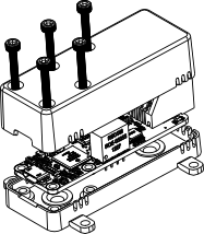 Le module Yocto-RS232 dispose de trous de montage 2.5mm. Vous pouvez utiliser ces trous pour y passer des vis. Le diamètre de la tête de ces vis ne devra pas dépasser 4.5mm, sous peine d'endommager les circuits du module. Veillez à que la surface inférieure du module ne soit pas en contact avec le support. La méthode recommandée consiste à utiliser des entretoises, mais il en existe d'autres. Rien ne vous empêche de le fixer au pistolet à colle; ça ne sera pas très joli mais ça tiendra.
