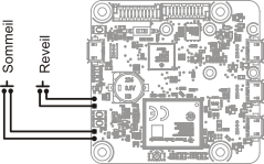 La mise en sommeil et le réveil peuvent être soit programmés sur base horaire, soit contrôlés par logiciel, soit contrôlés manuellement à l'aide de deux boutons poussoirs présents sur le circuit du YoctoHub-Wireless-n. Vous y trouverez aussi deux paires de contacts qui permettent de dériver ces deux boutons.